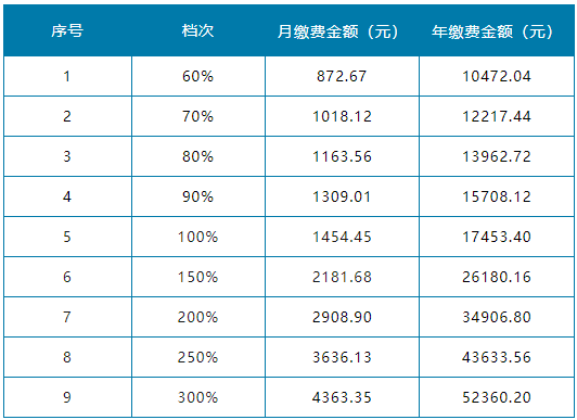 2024年度灵活就业人员养老保险缴费档次及金额详情如下: